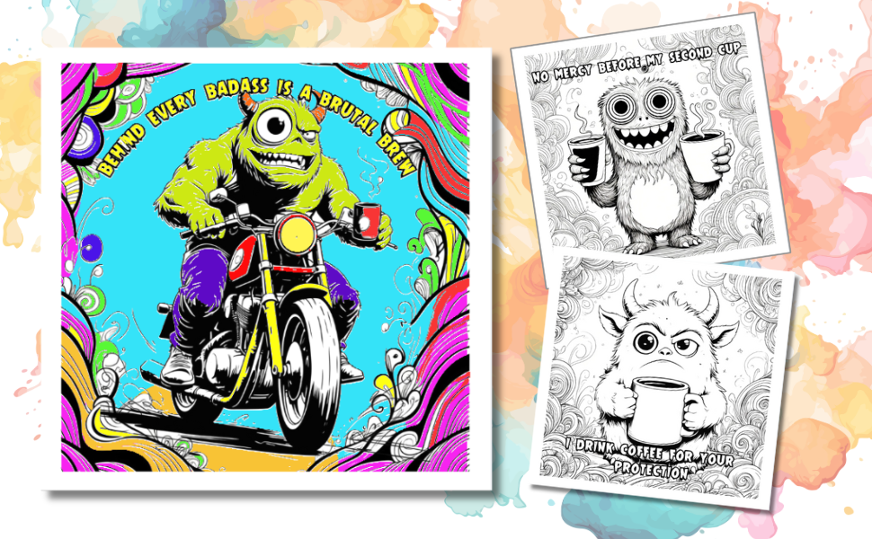 Recharge your creativity with a one-of-a-kind adult coloring book designed for coffee addicts, quote lovers, and fans of quirky humor. This coloring book features coffee-fueled monsters, inspirational and sarcastic quotes, and stress-relieving designs to help you unwind and laugh while sipping your favorite brew.